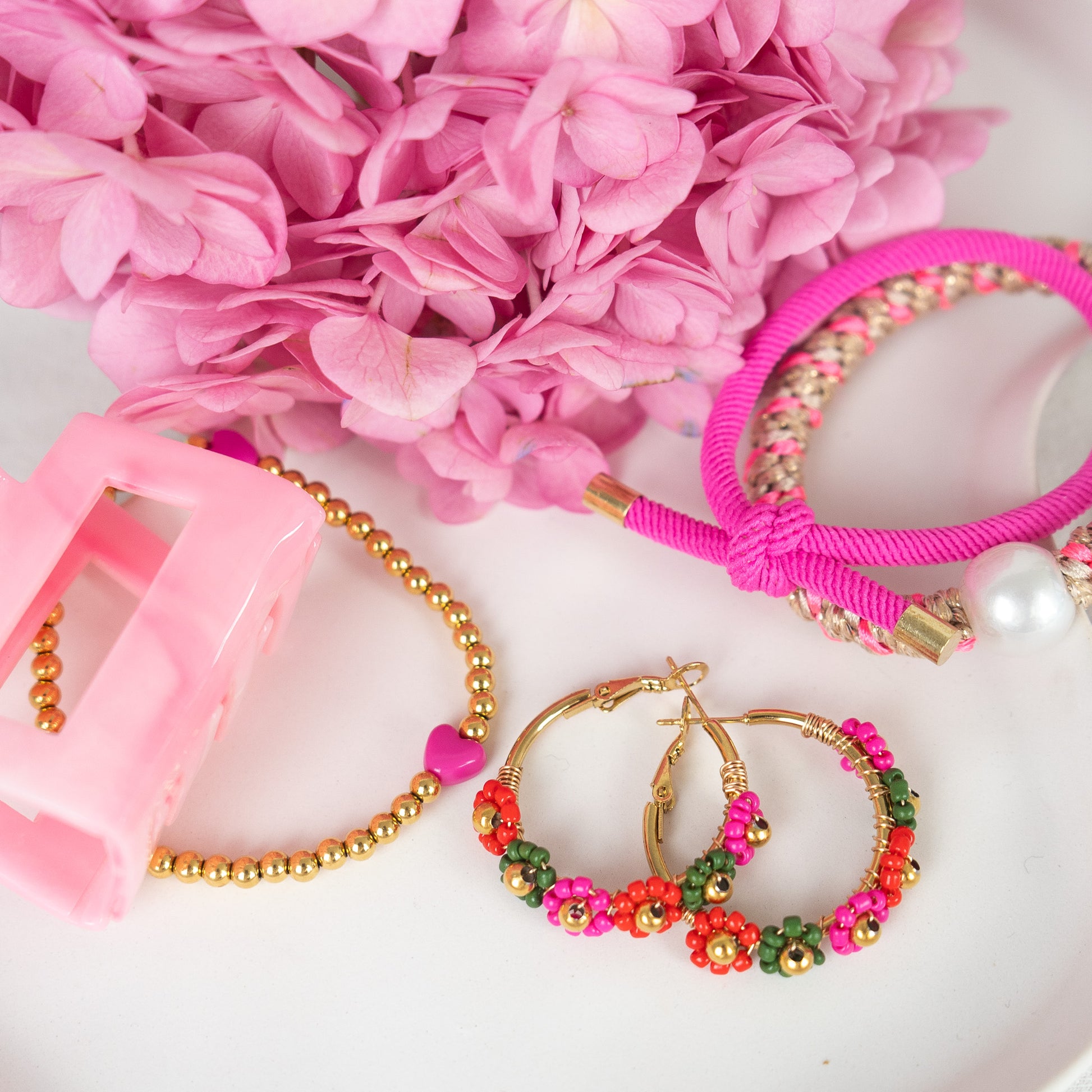 Glänzende Creolen in Gold, verziert mit feinen Perlen. Ein stilvolles Accessoire für jeden Anlass.